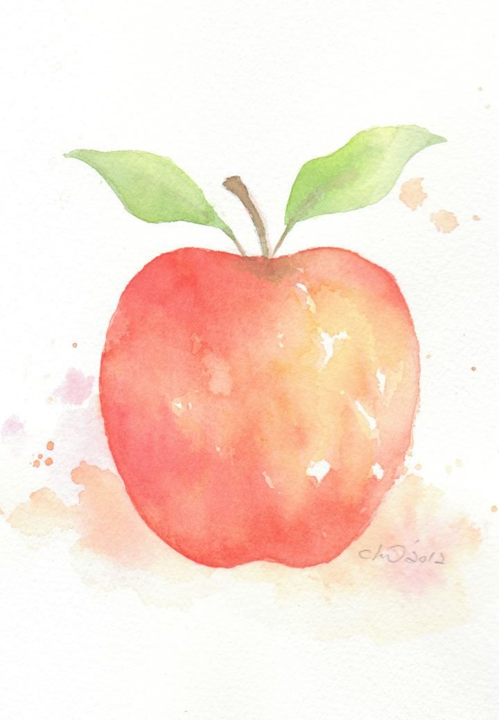 Яблоко акварелью