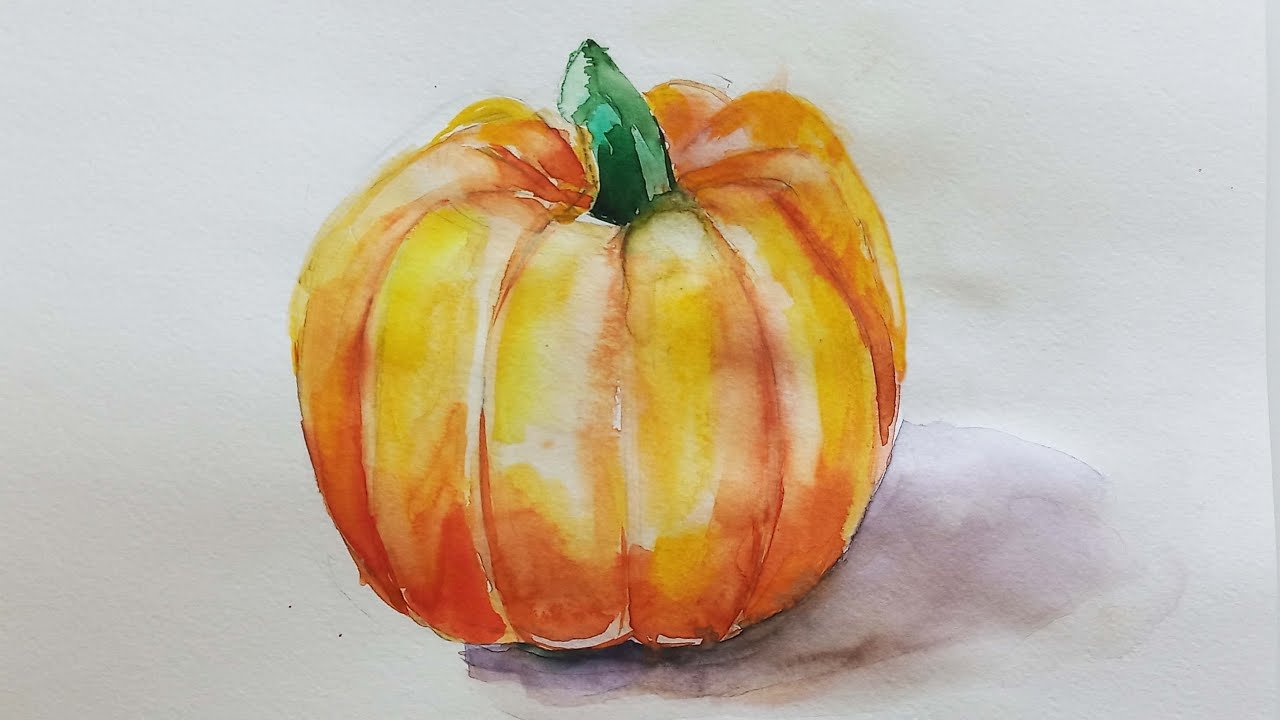 ![Рисование тыквы акварелью]()