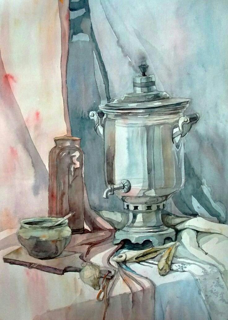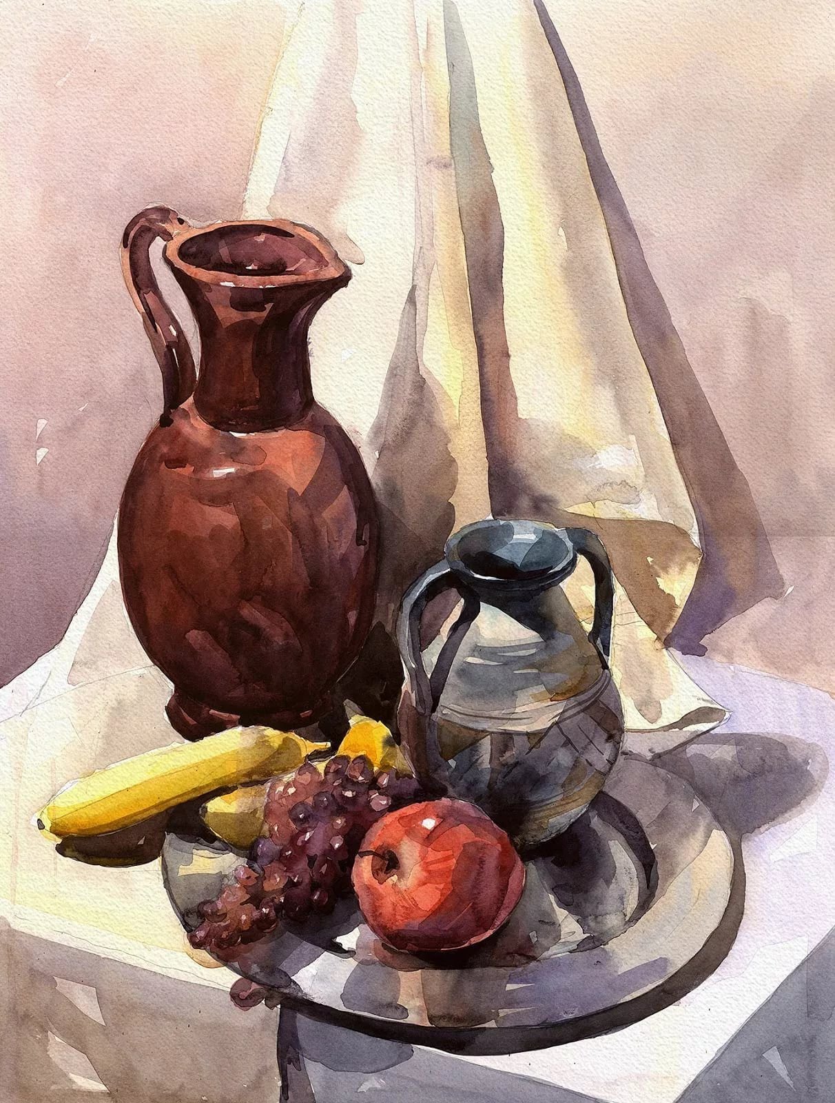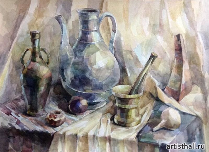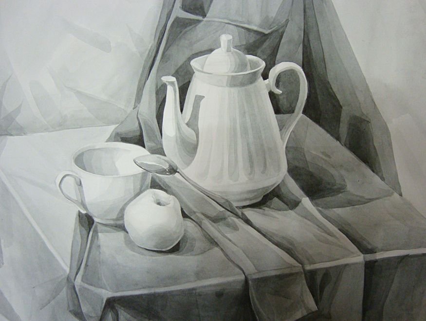 ![Натюрморт акварелью лессировка Академическая живопись]()