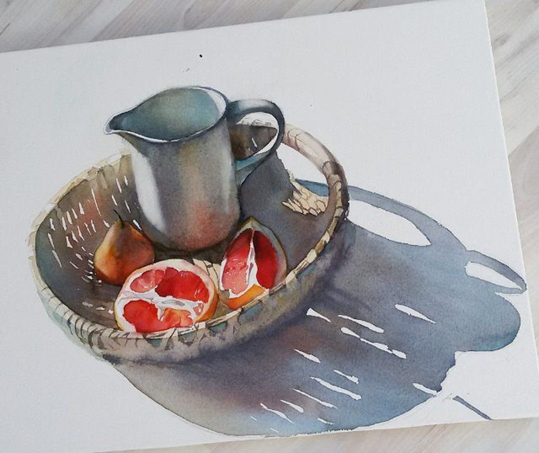 ![Натюрморт акварелью лессировка Академическая живопись]()