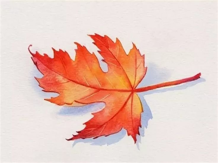 Кленовый лист акварелью поэтапно