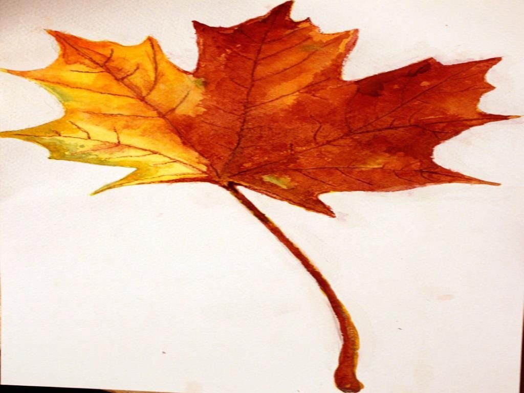 Акварелью для начинающих кленовый лист