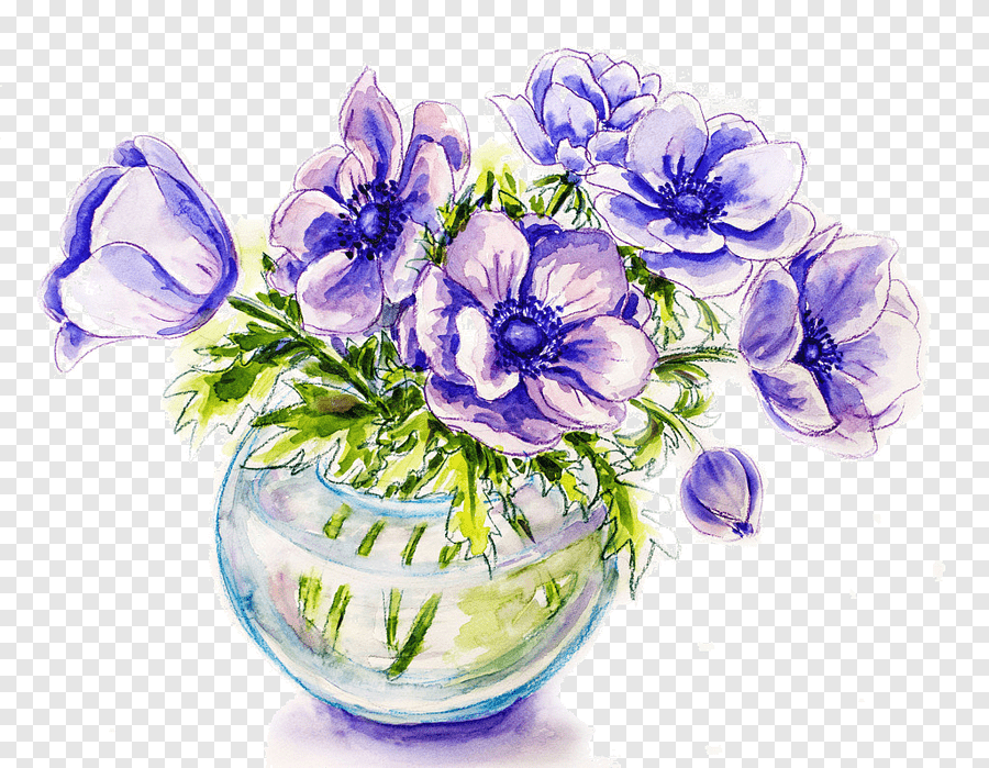 ![Букет цветов в вазе акварелью]()