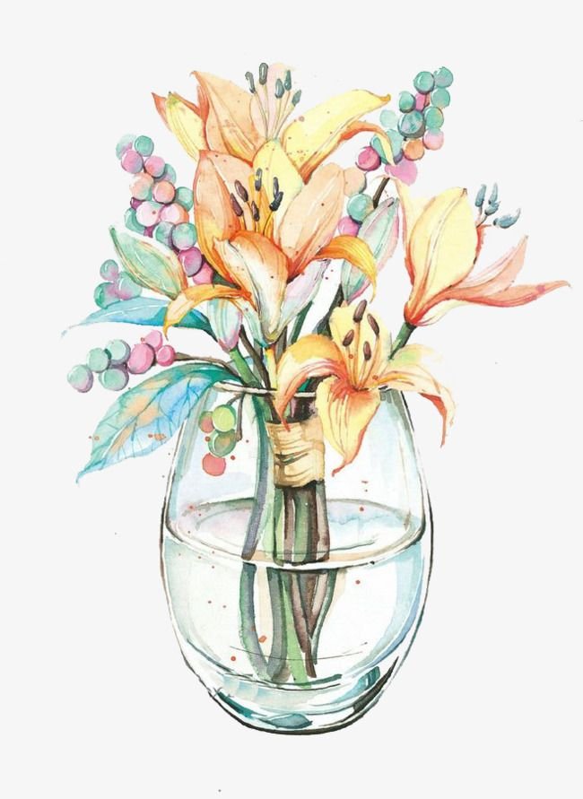 ![Прозрачная ваза акварелью]()