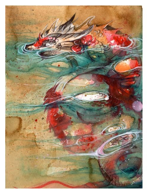 ![Дракон акварель]()