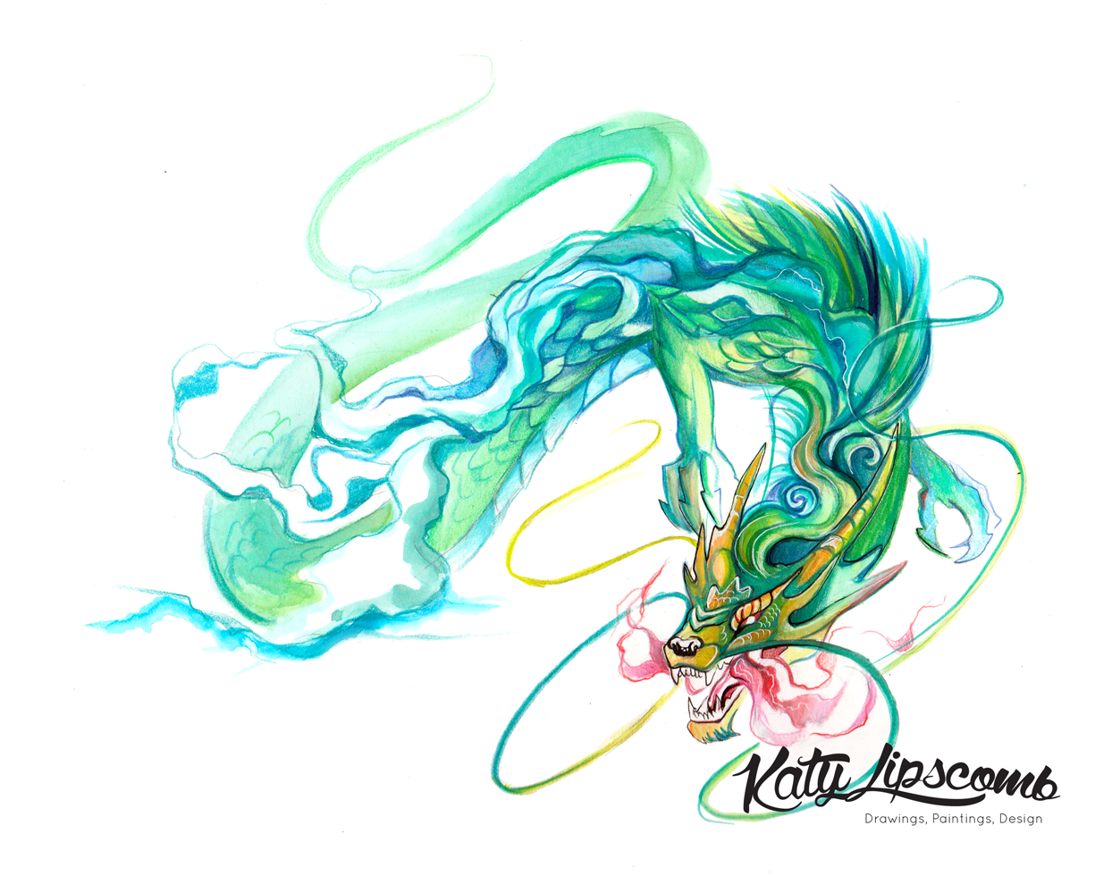 Китайский дракон эскиз акварель