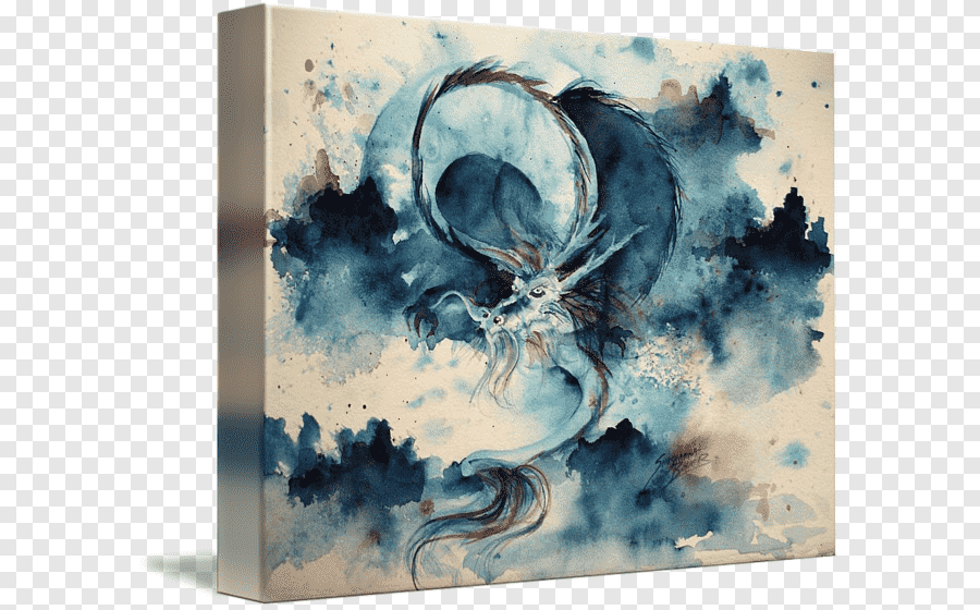![Китайский дракон акварель]()