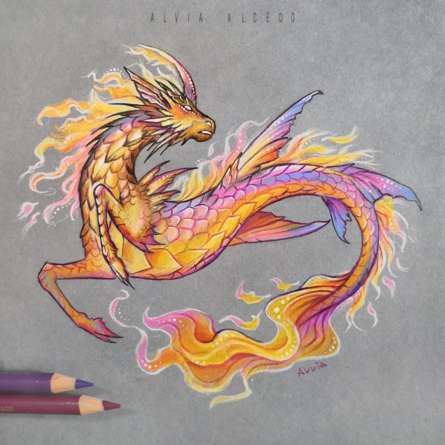 Дракон акварельными карандашами