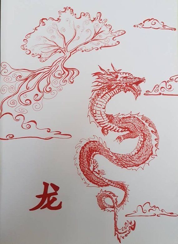 ![Китайский дракон эскиз акварель]()
