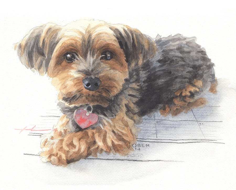 ![Йоркшир терьер акварелью]()