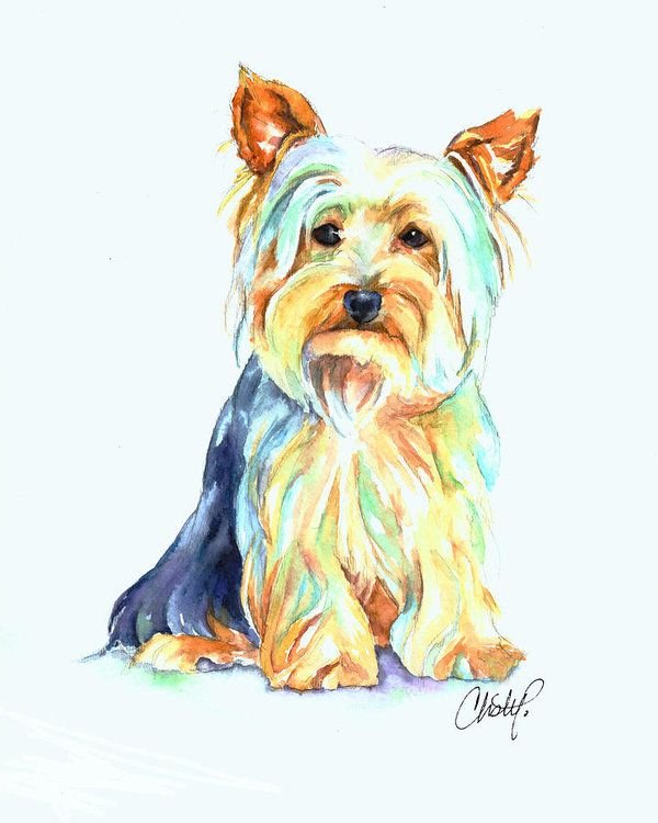 ![Йоркширский терьер акварелью]()