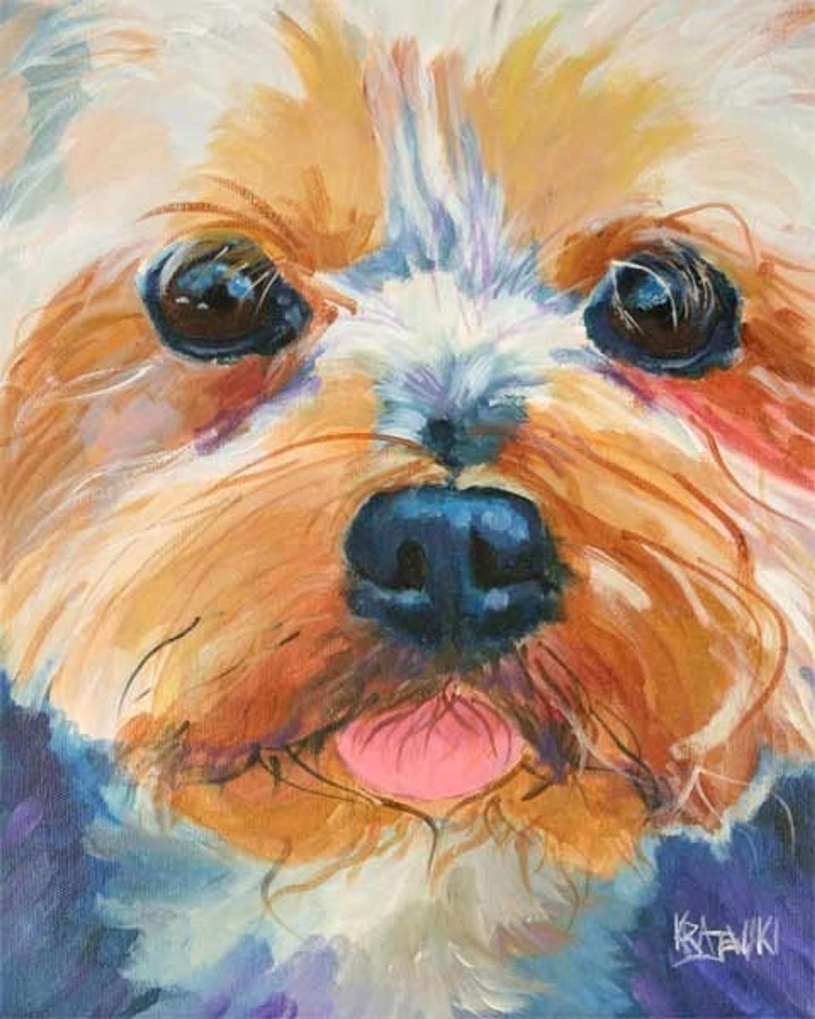 ![Собачка Йоркшир живопись]()