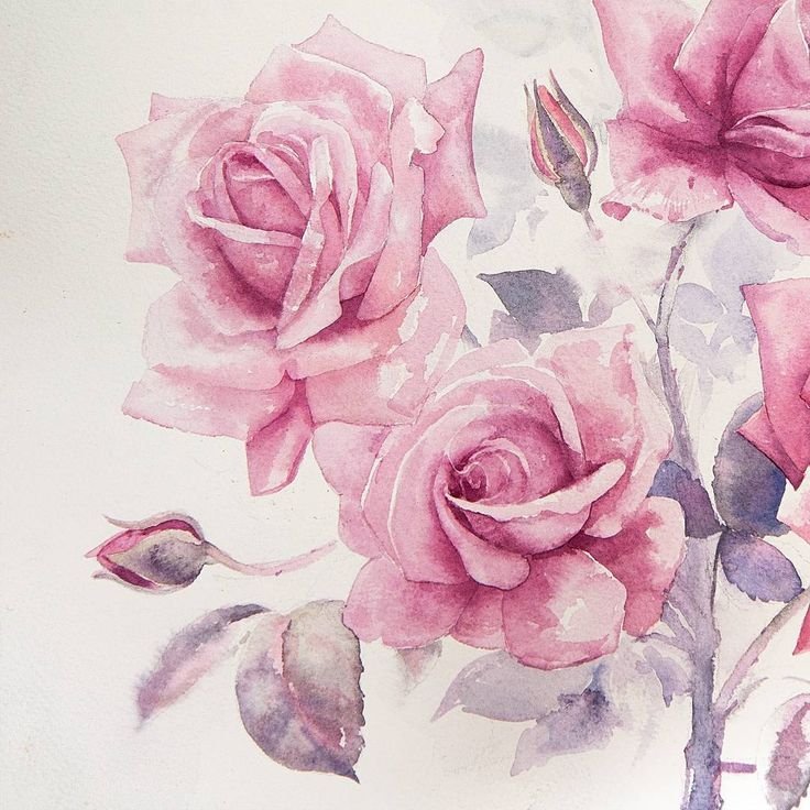 ![Пыльная роза акварель]()