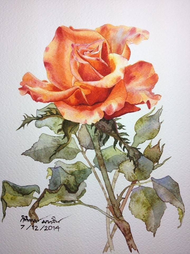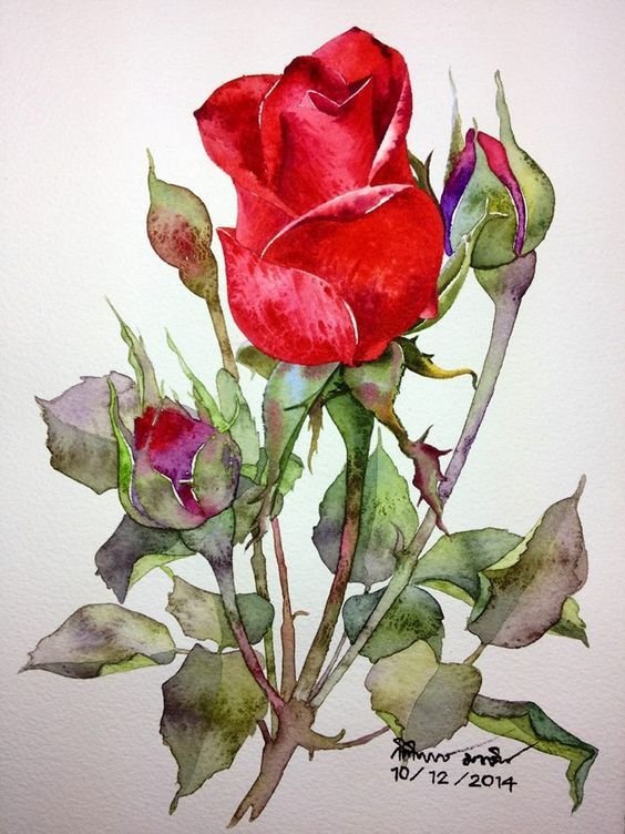 ![Kitipong Maksin акварель роза]()