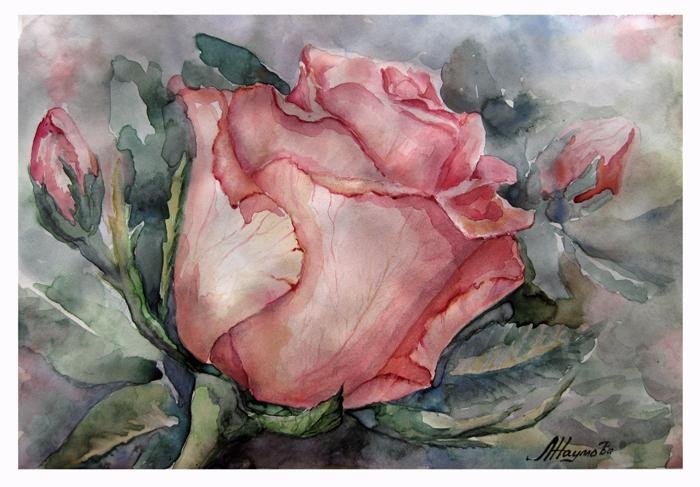 Роза акварелью для начинающих