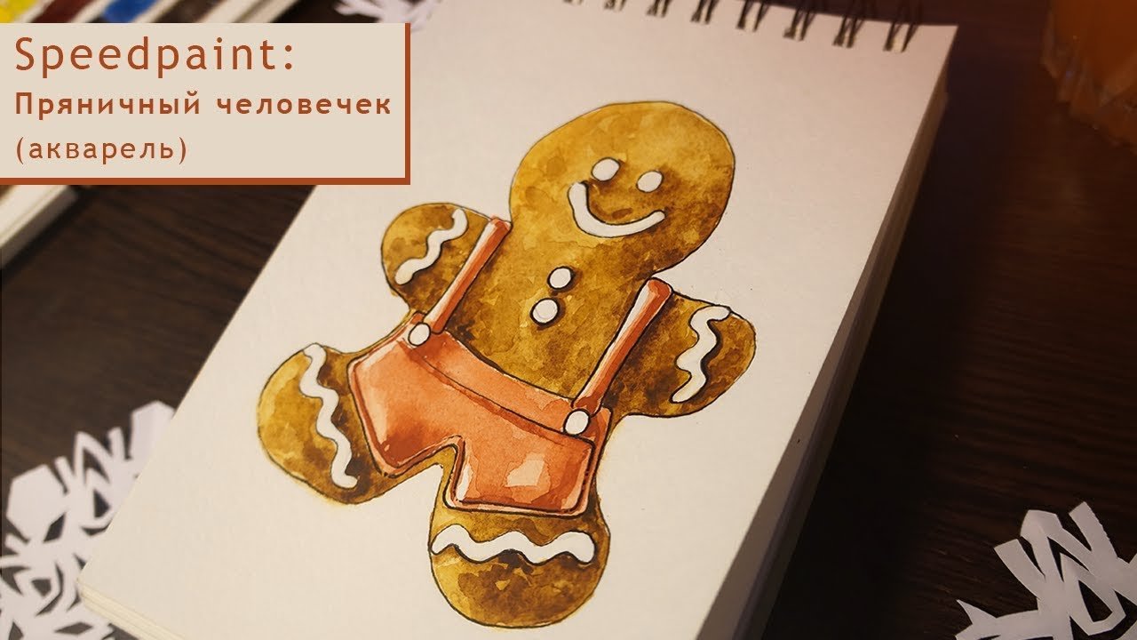 Имбирный человечек акварель