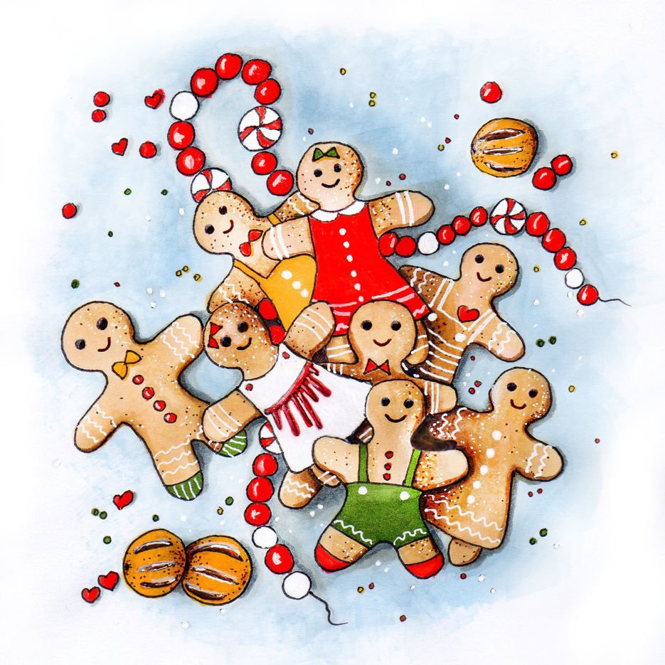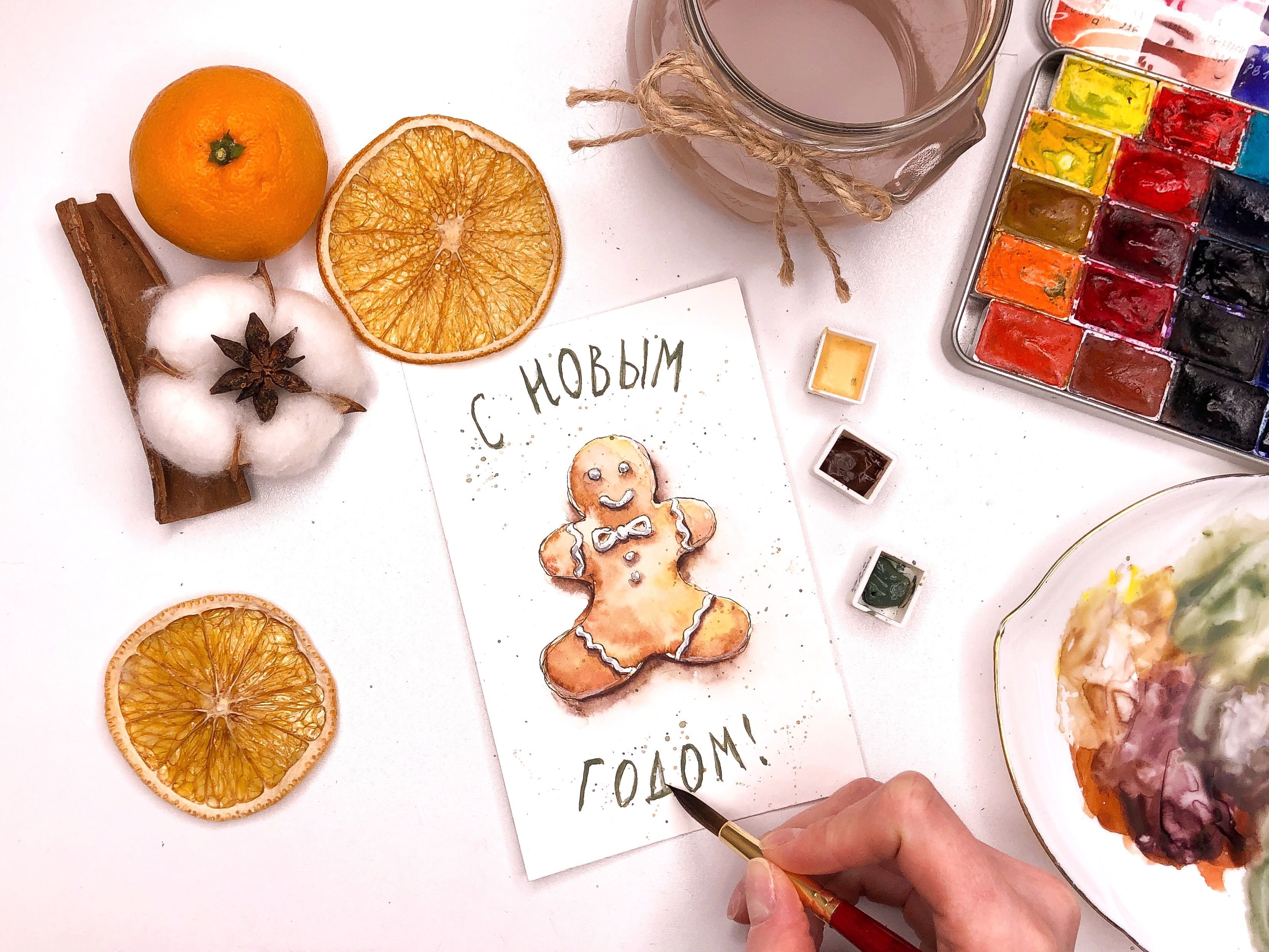 ![Имбирный человечек акварель]()