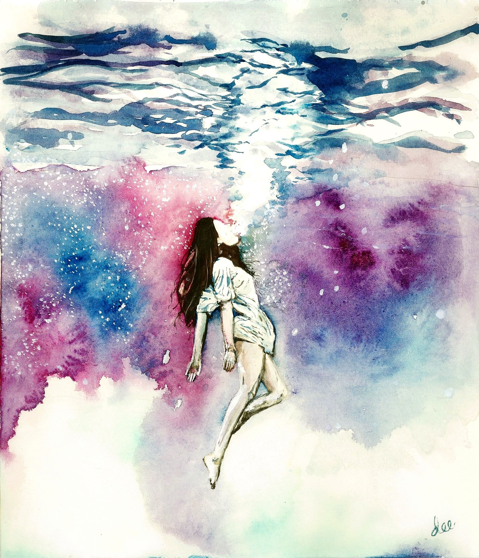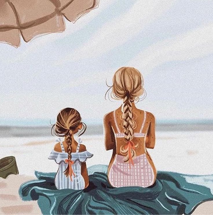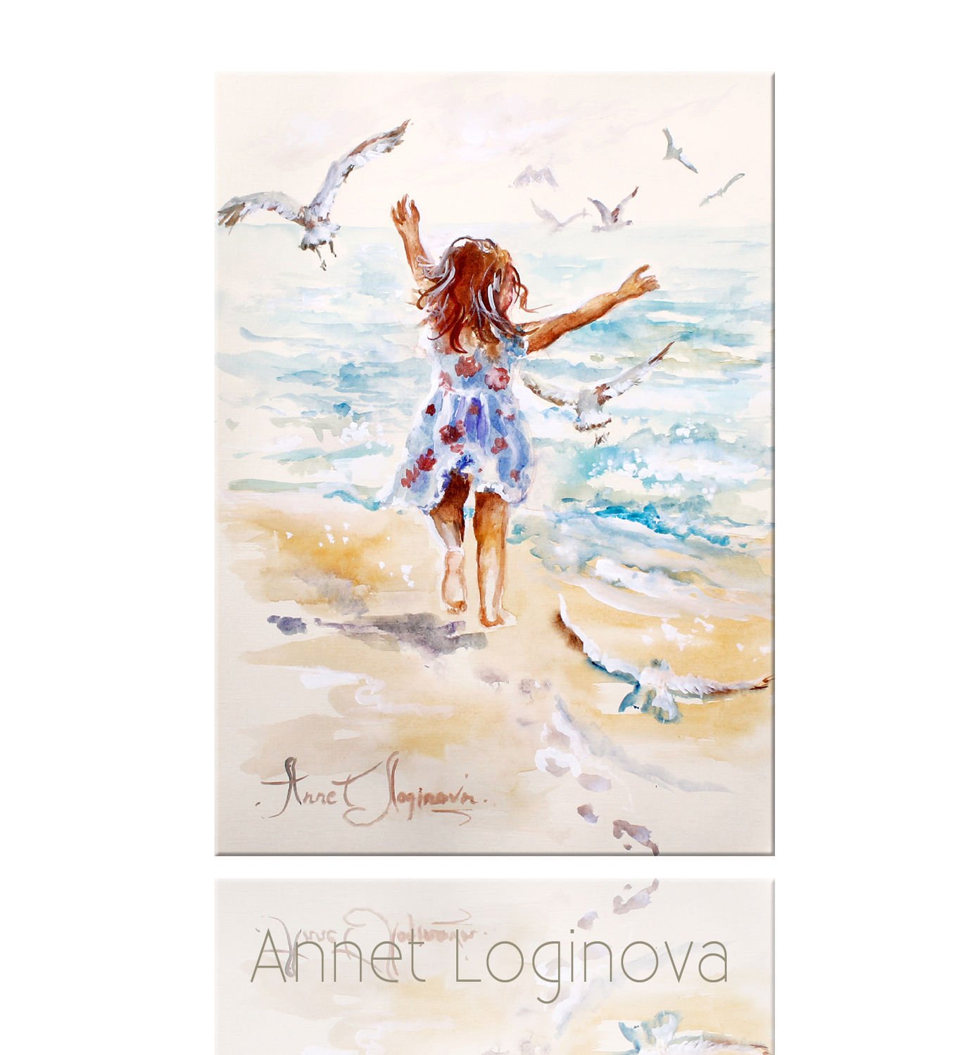![Девочка у моря акварель]()