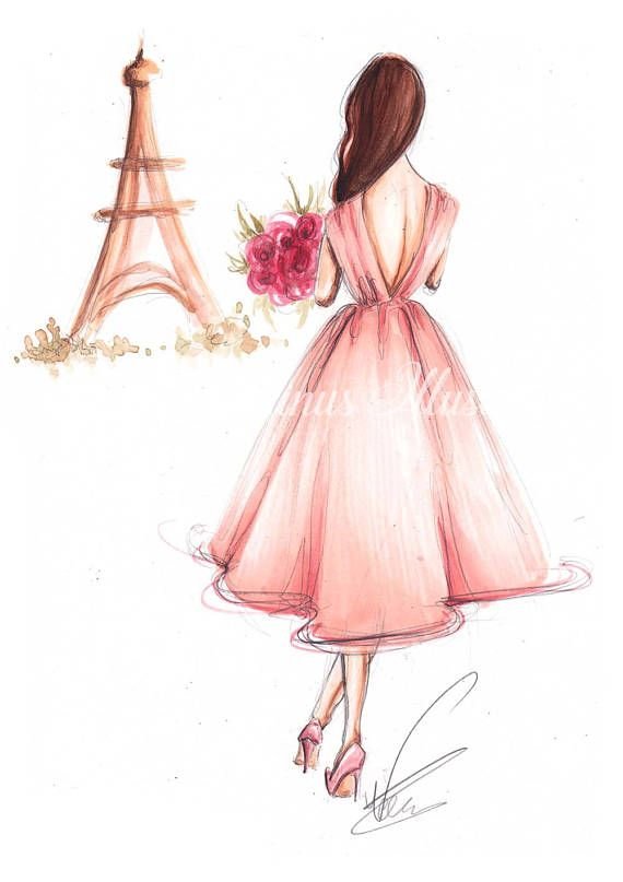 ![Девушка в платье рисунок]()