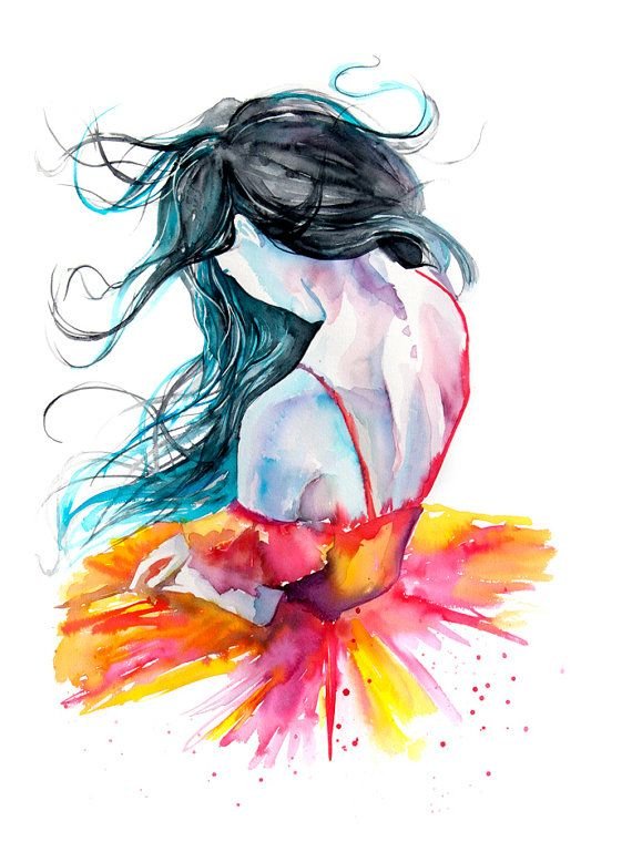 ![Девушка сзади акварель]()