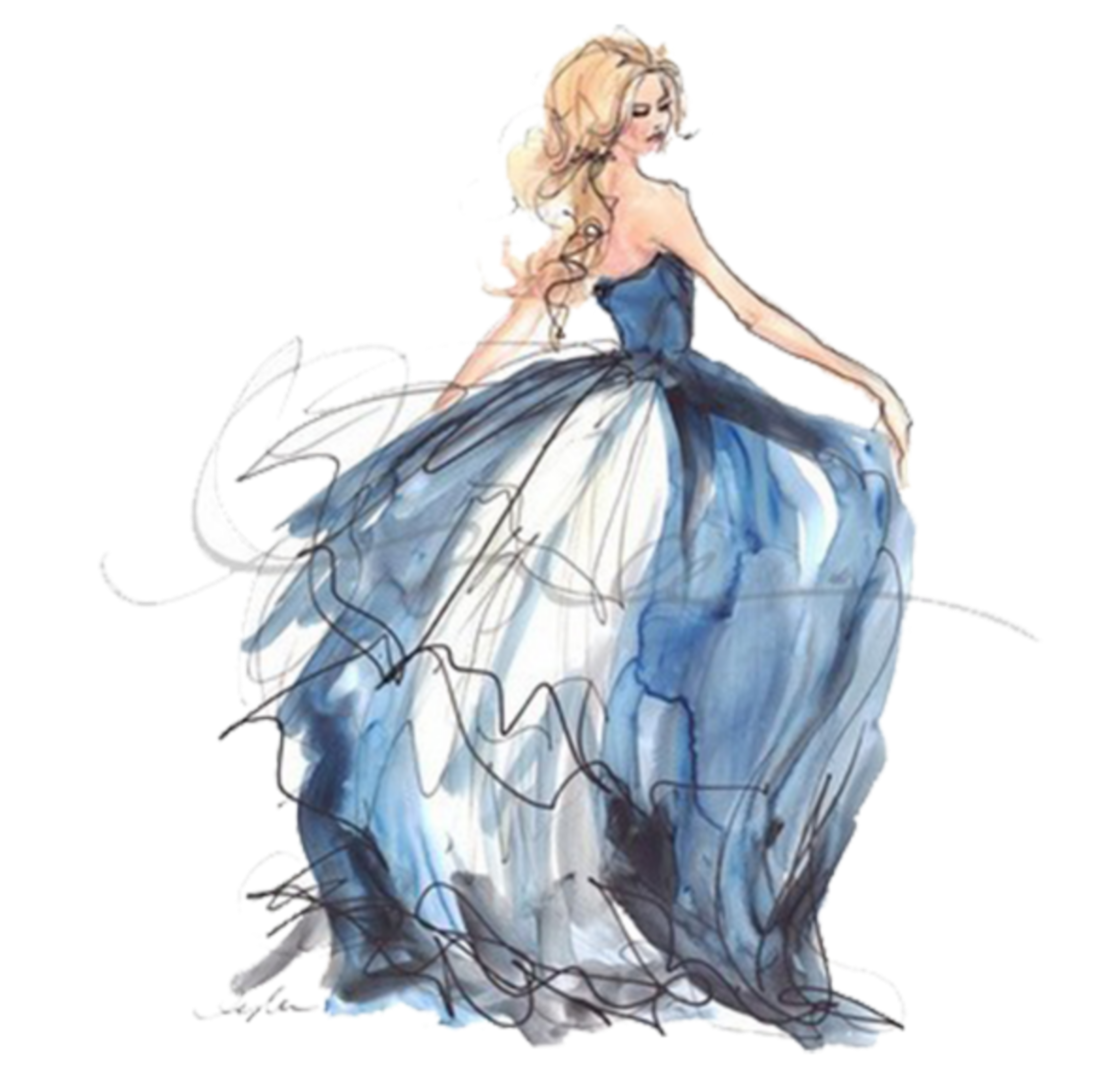 ![Акварельные девушки в платьях]()