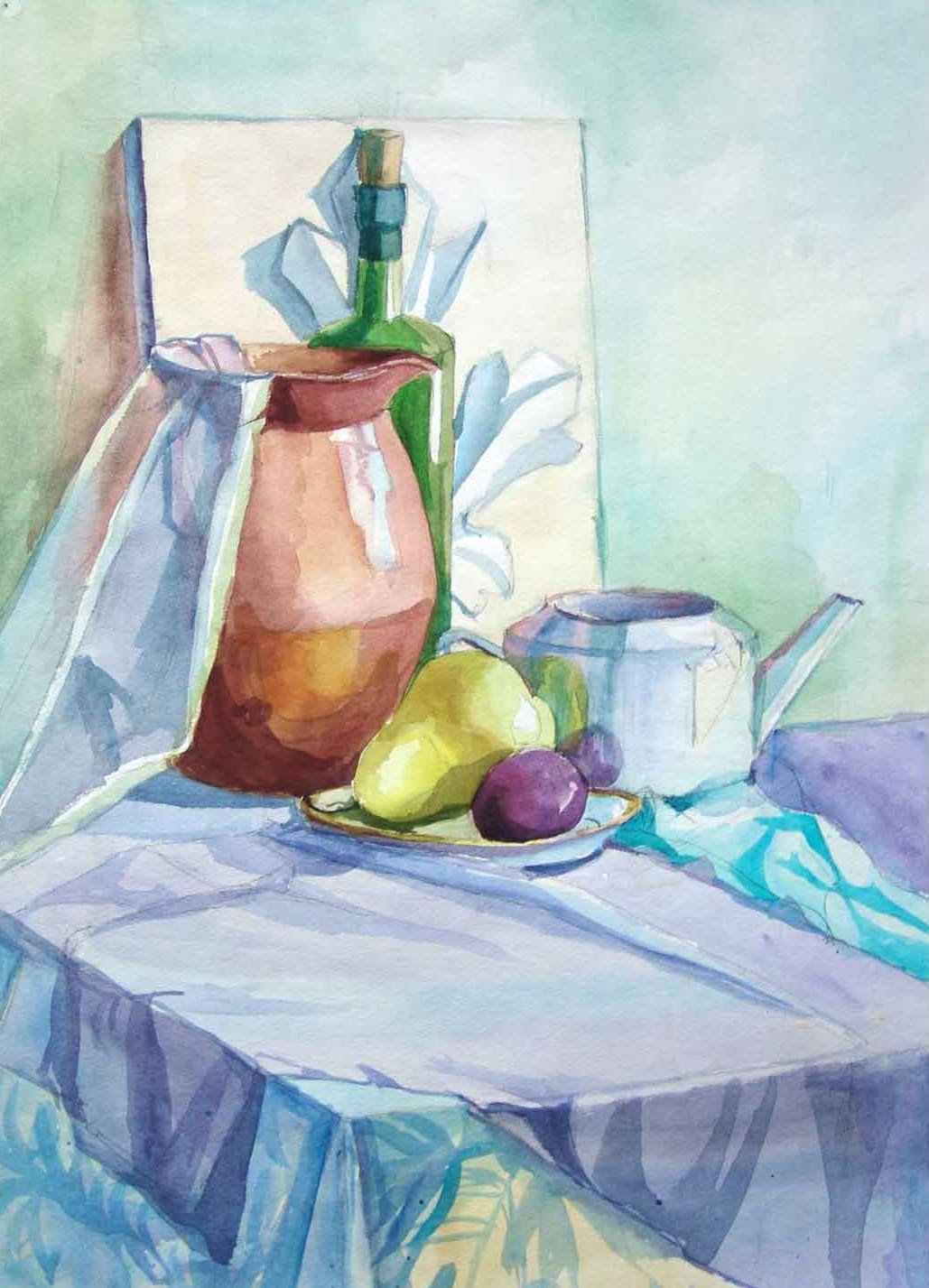 ![Натюрморт акварелью лессировка Академическая живопись]()
