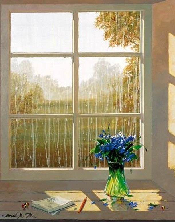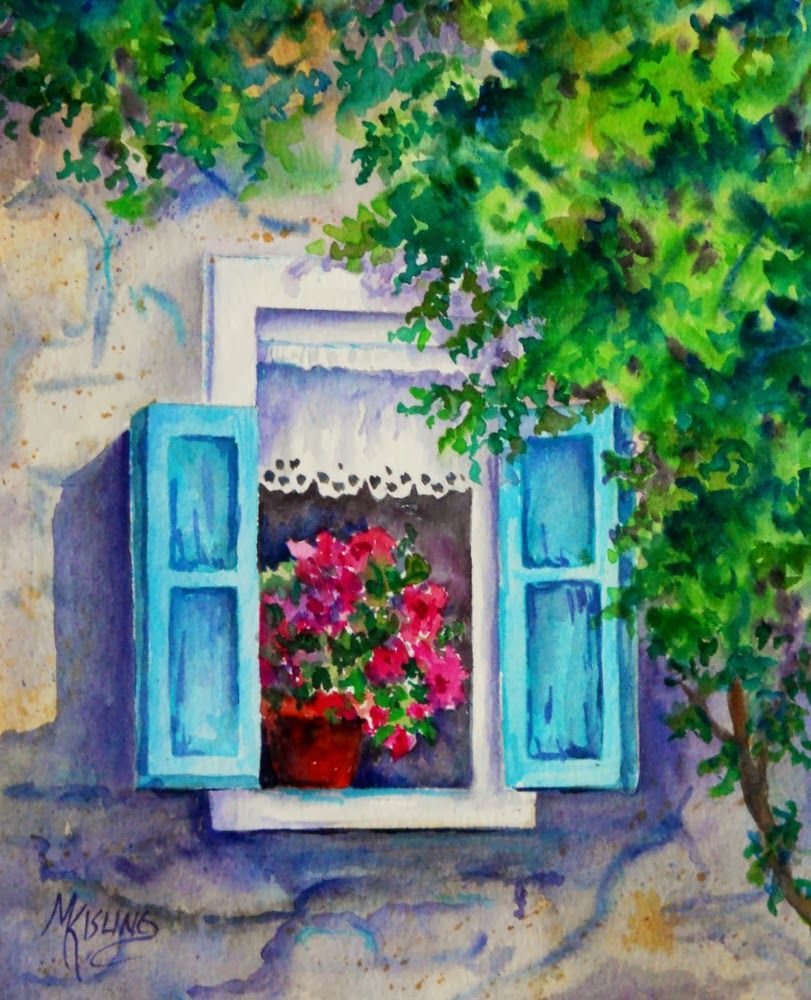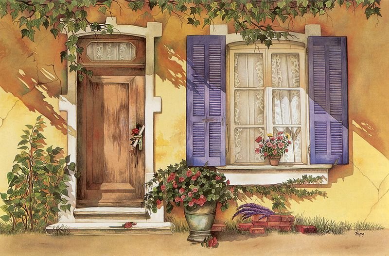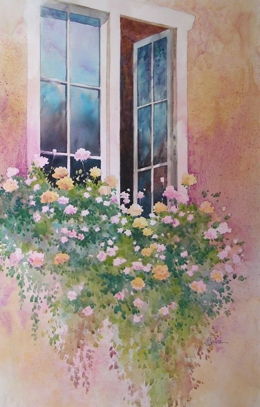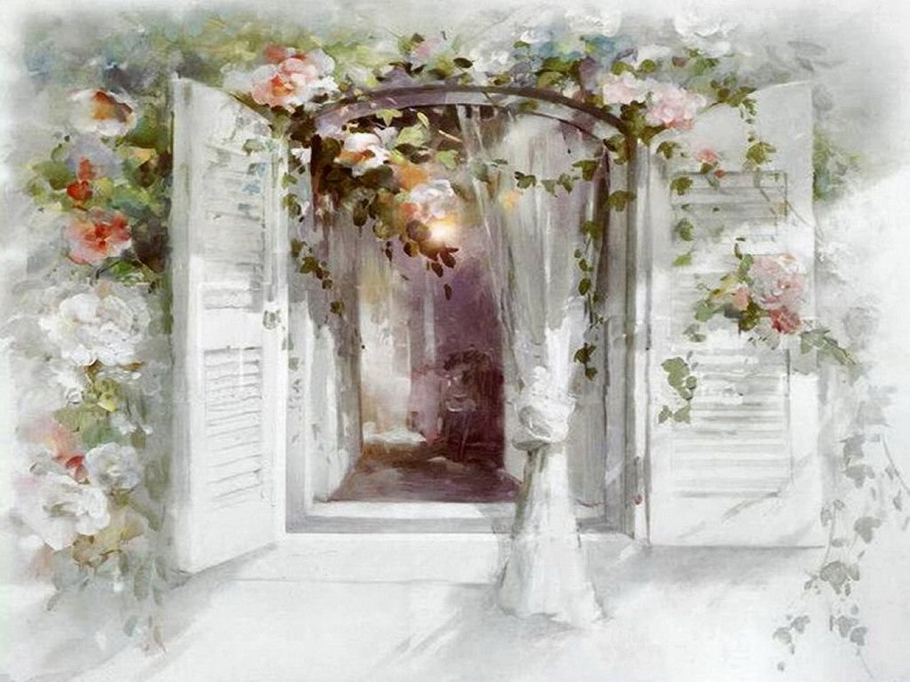 На холсте расцветает нежный пейзаж, запечатлевший открытое окно весьма умелыми акварельными мазками. Радостные и яркие цвета придают рисунку особую живость и свежесть. Мягкий солнечный свет проникает сквозь стекло, создавая игривые блики на окнах и обильное освещение комнаты. Притягательность этого произведения искусства заключается в его способности передать атмосферу тепла и уюта, которая распространяется из этой комнаты на весь пейзаж за окном. Открытое окно наполняет картину свежим воздухом, дарит возможность насладиться прекрасным видом на природу и ощутить легкое дуновение ветра. Этот рисунок акварелью открывает окно в красоту и спокойствие, позволяя зрителю прочувствовать магию момента и насладиться гармонией с окружающим миром.