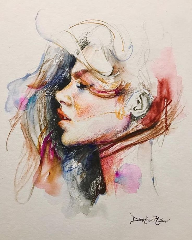 ![Художница Димитра Милан (Dimitra Milan) рисунки девушек красками 2017]()