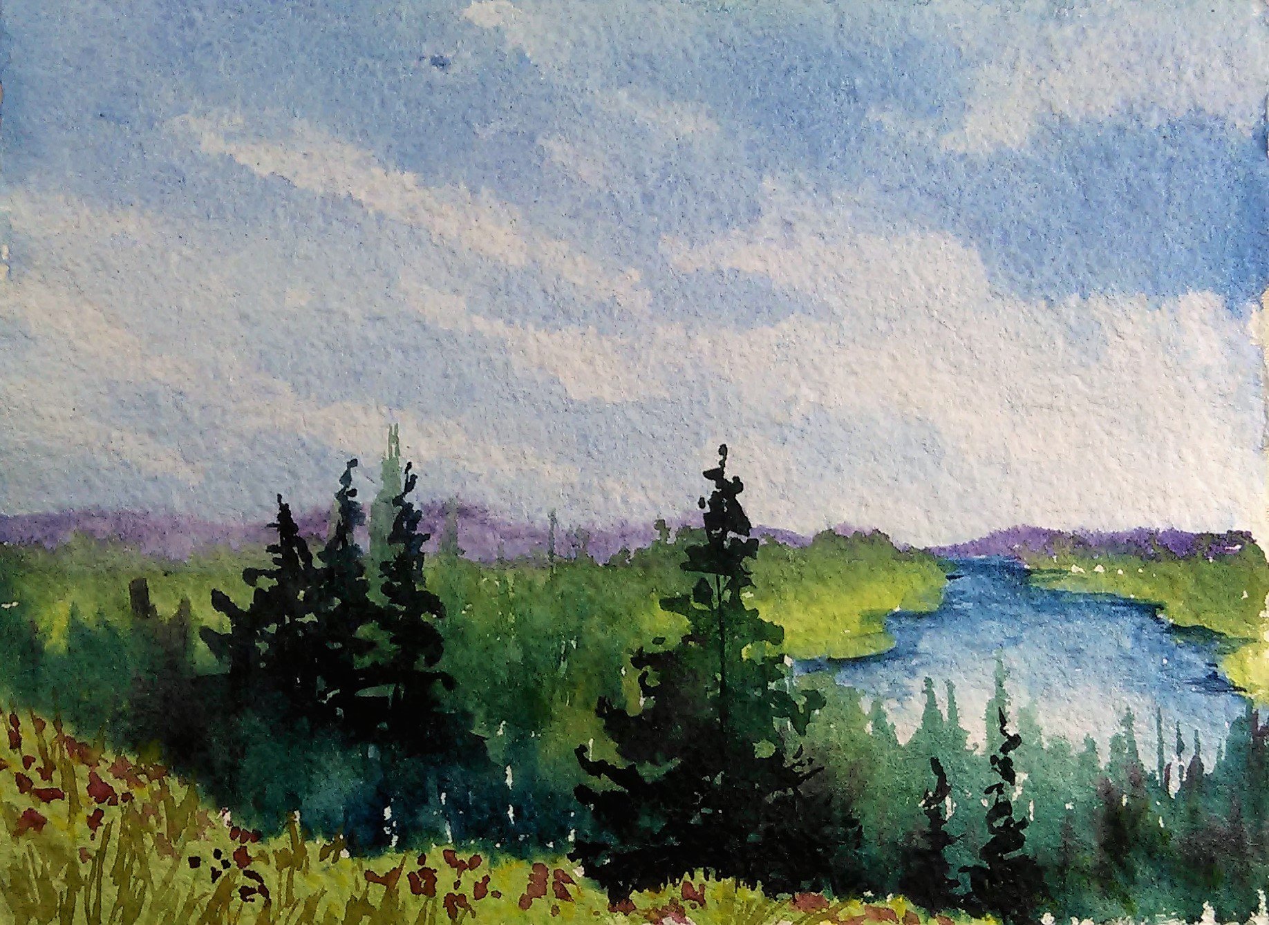 Пленэр акварелью река