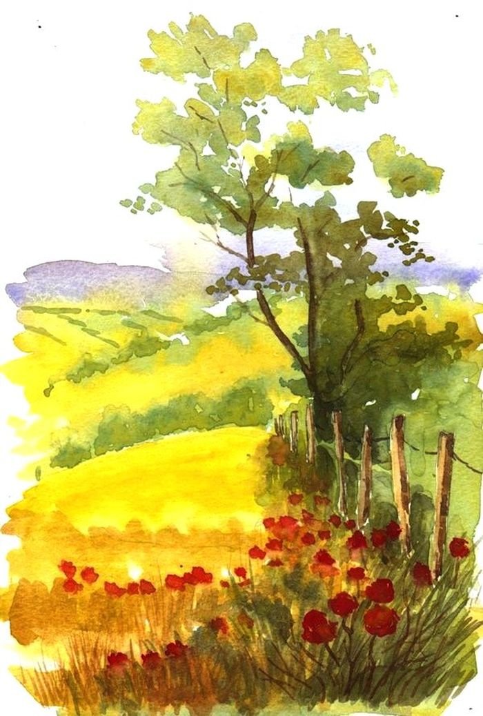 ![Летний пейзаж акварелью легкий]()