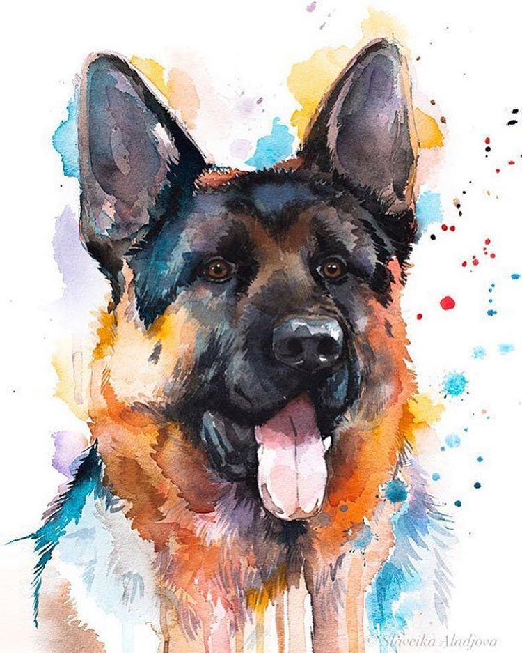 ![Портрет собаки акварелью]()