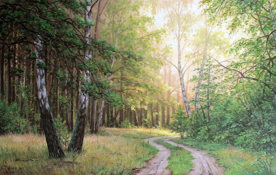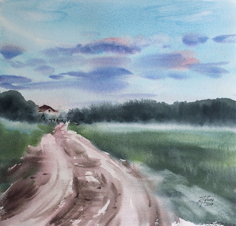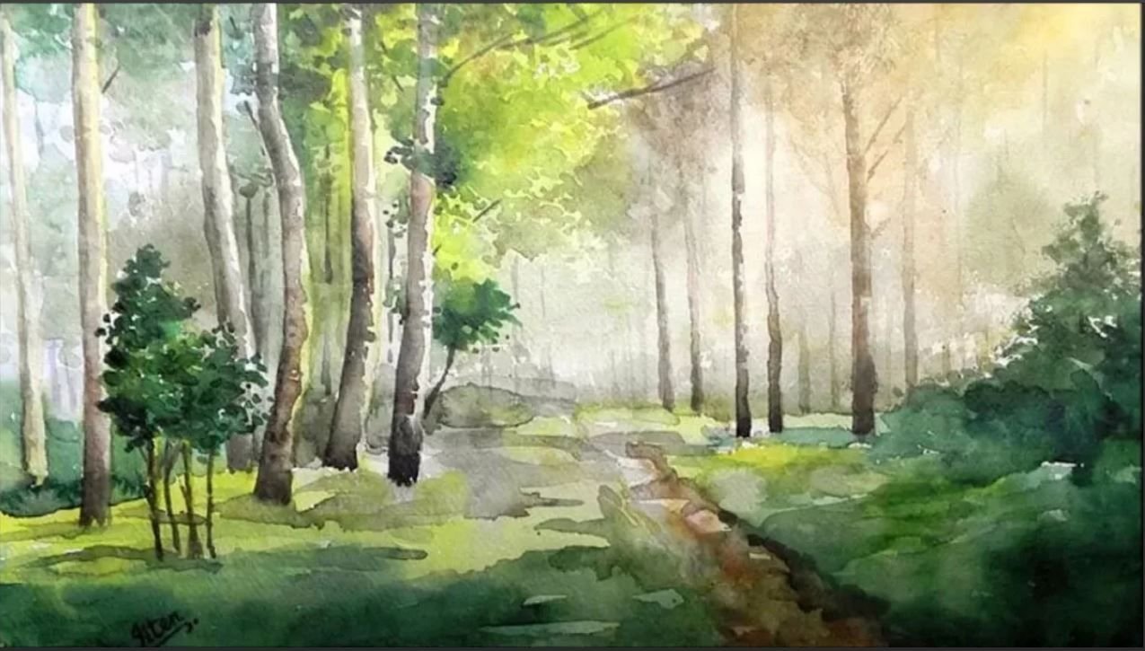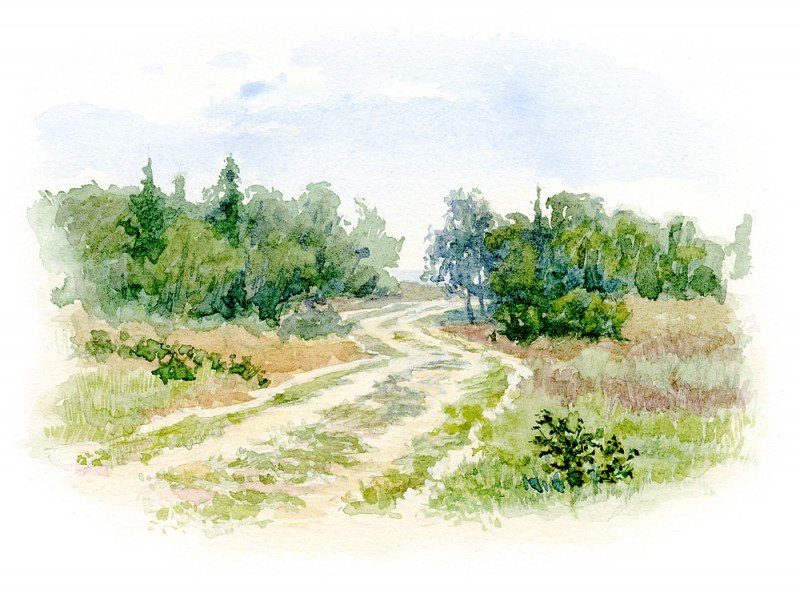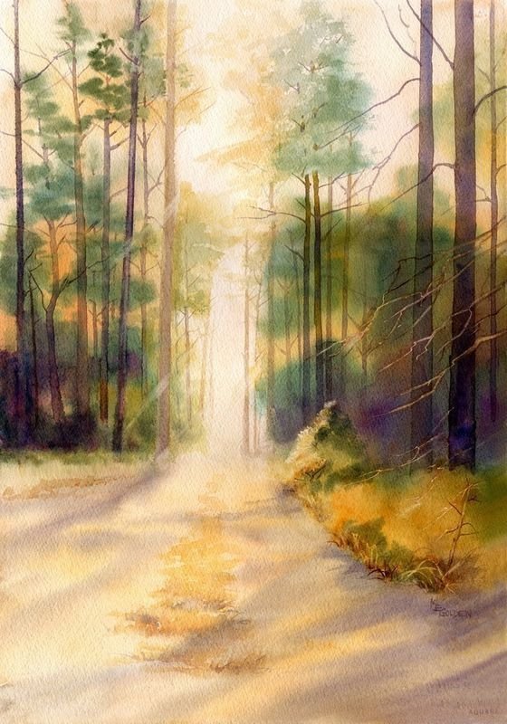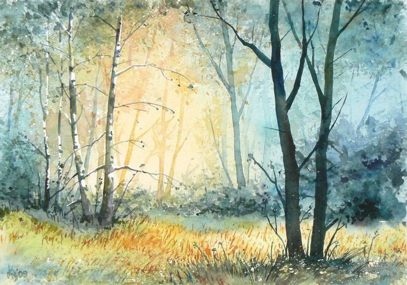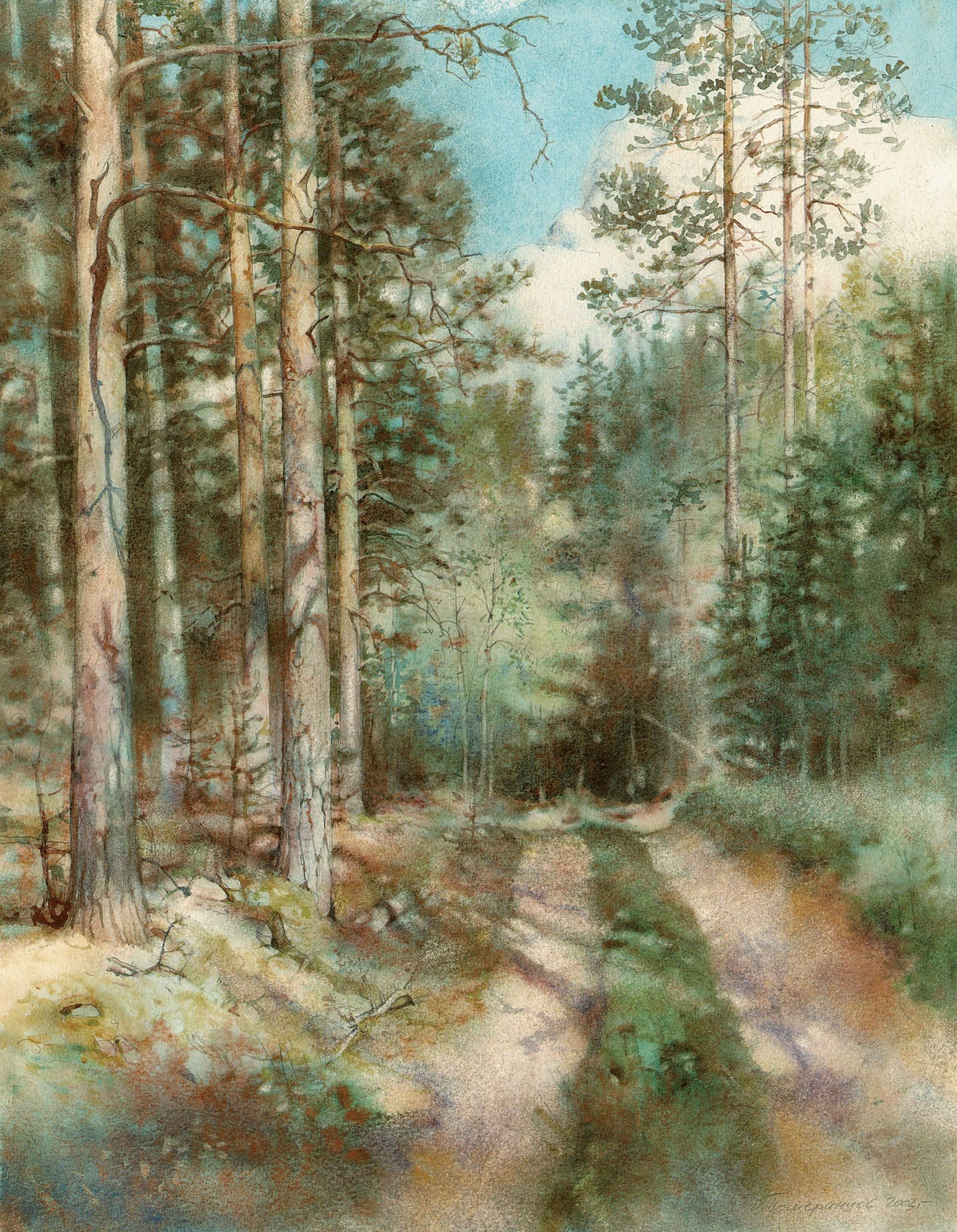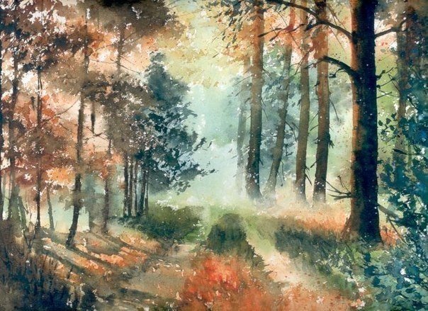 ![Лесной пейзаж акварелью Степан Галактионова]()