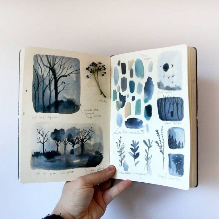 ![Рисунки акварелью в скетчбуке простые]()