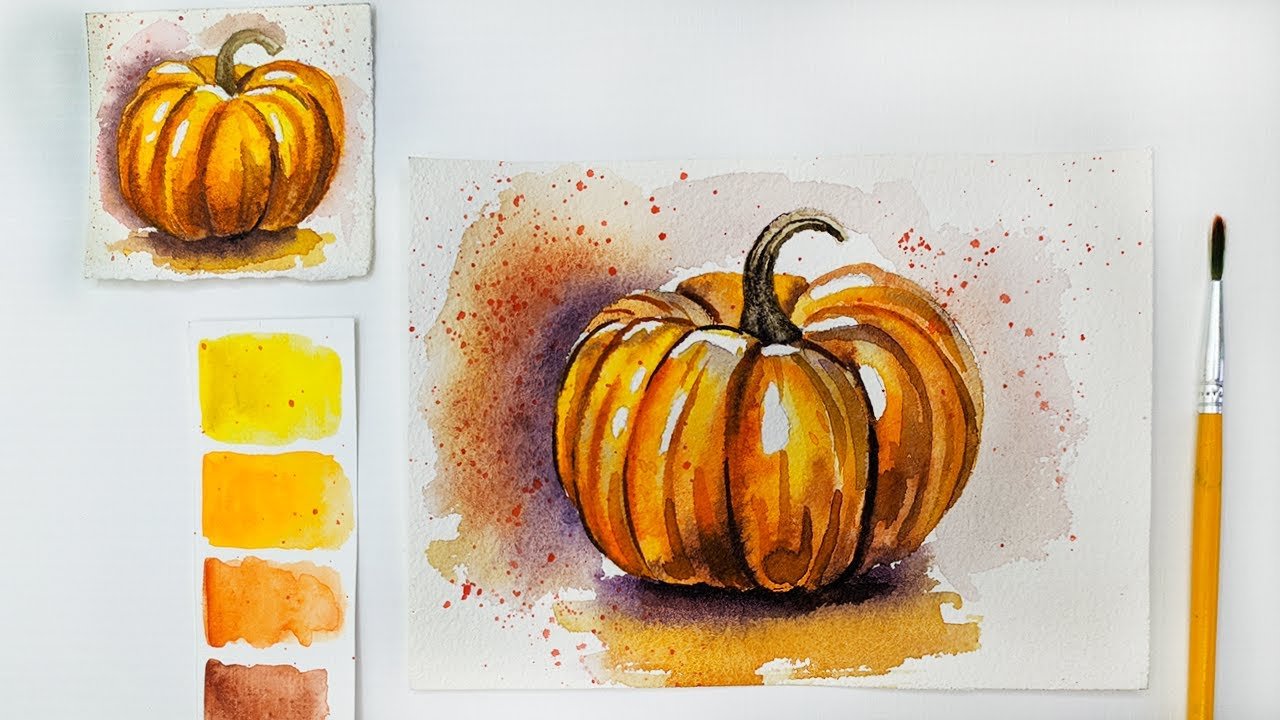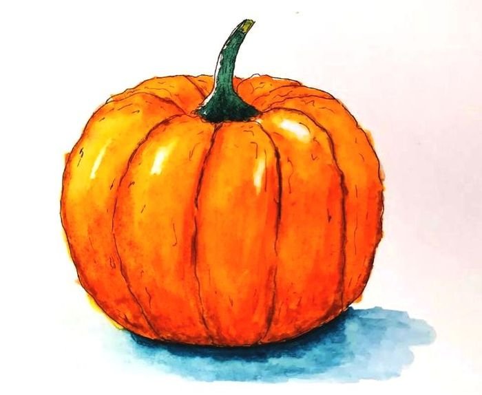 ![Рисование тыквы акварелью]()