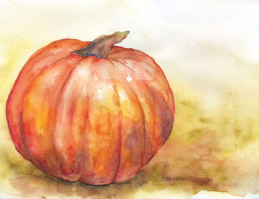Тыква акварелью для начинающих