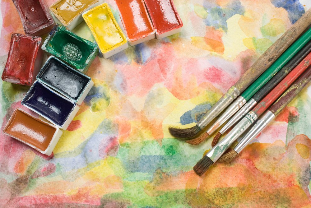 ![Акварельные краски и кисти]()