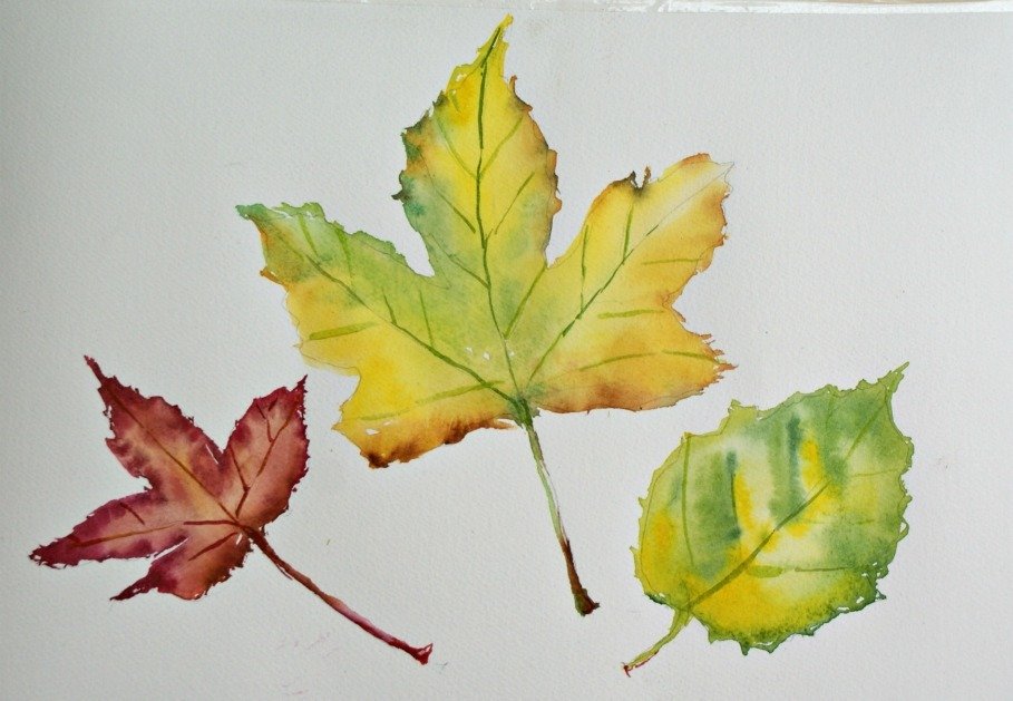 Рисование акварелью осенних листьев