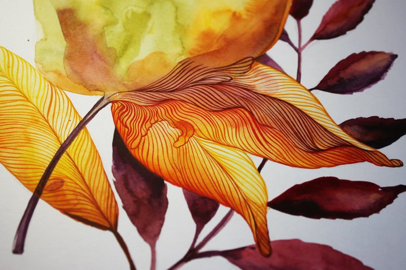 Лессировка акварель листья