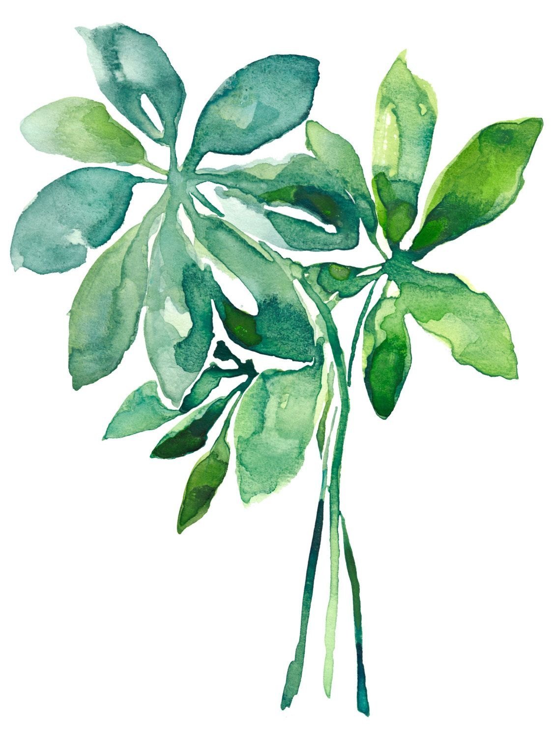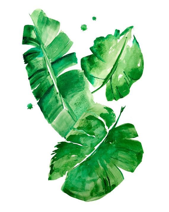 ![Зеленые тропические листья акварель]()
