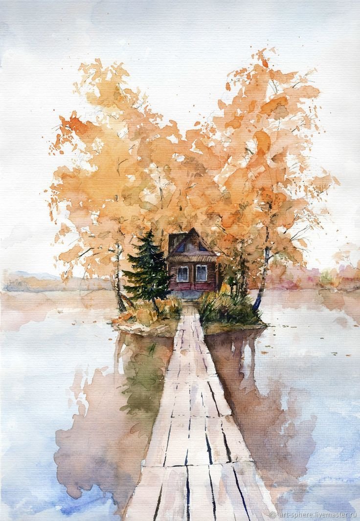 ![Пейзаж акварелью осень]()
