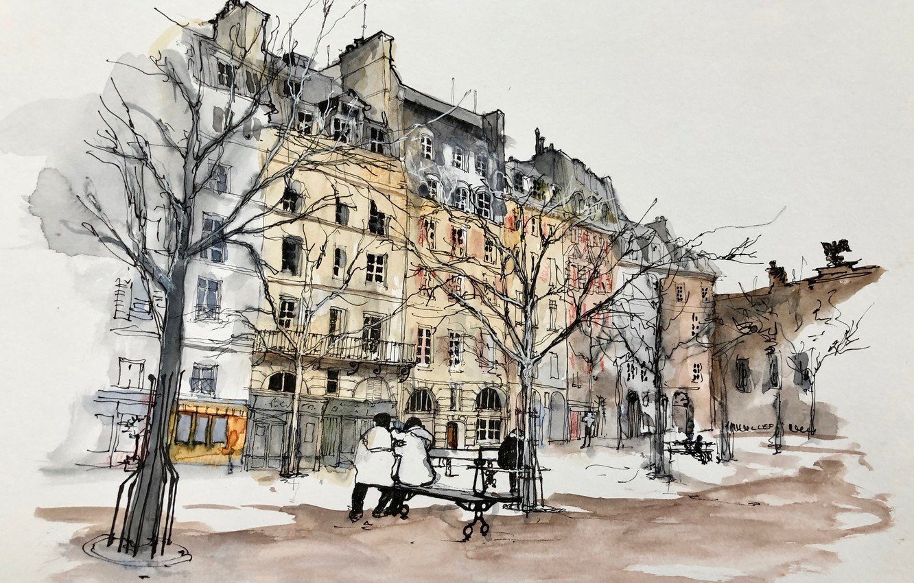 ![Улочки Парижа акварель]()