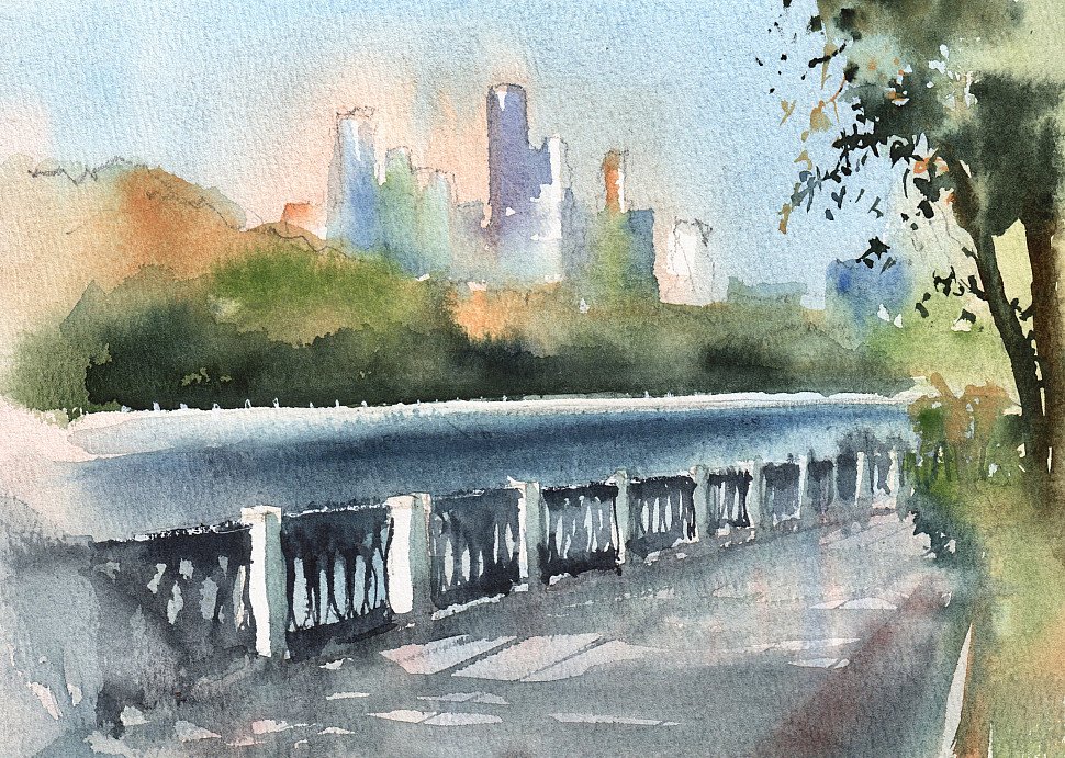 ![Городской пейзаж акварель]()