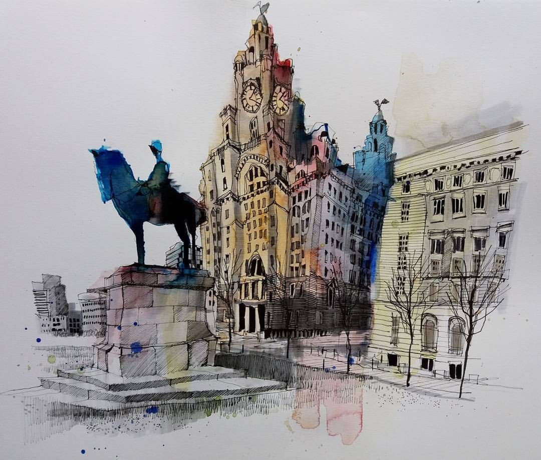 ![Акварельная Графика городской пейзаж]()