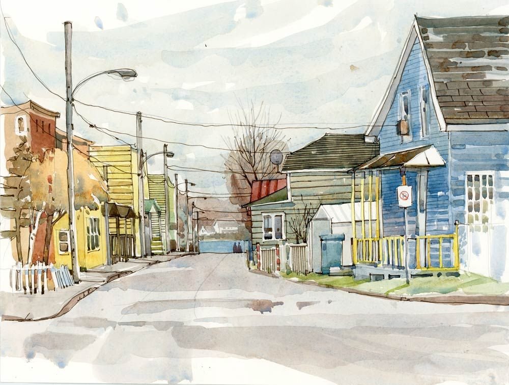 ![Этюд улицы акварель]()