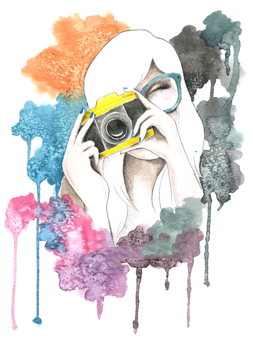 ![Девушка с фотоаппаратом акварель]()