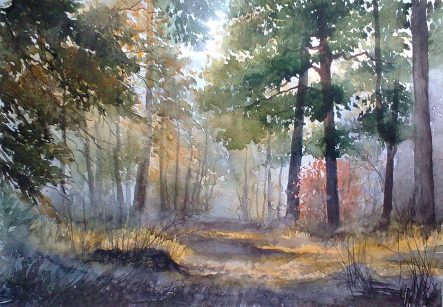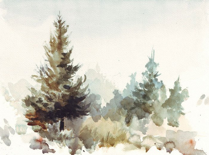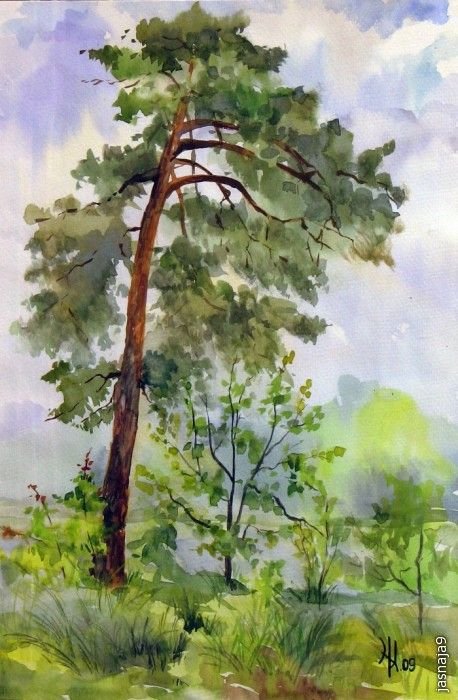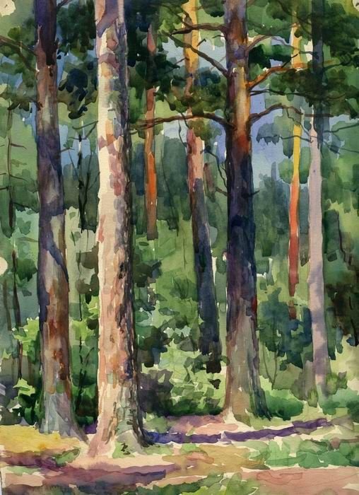 ![Екатерина Иванова Лесные пейзажи акварелью]()