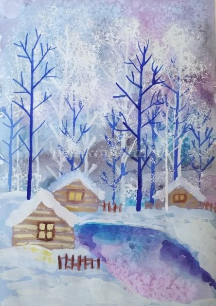 Зимушка зима - это очаровательный рисунок, выполненный акварелью. В нем изображена зимняя пейзажная картина, полная холодных оттенков и мерцающего снега. Зимушка весьма притягательна своей неповторимостью и атмосферой, которую создает автор своим мастерством. Рисунок олицетворяет зимнее волшебство, мир и спокойствие, вызывая у зрителя ощущение уюта и тепла. Акварельные переходы цветов и игра света на снежной поверхности делают этот рисунок по-настоящему особенным и запоминающимся. Он станет прекрасным украшением интерьера, подарком или вдохновением для любителей искусства и зимней красоты.