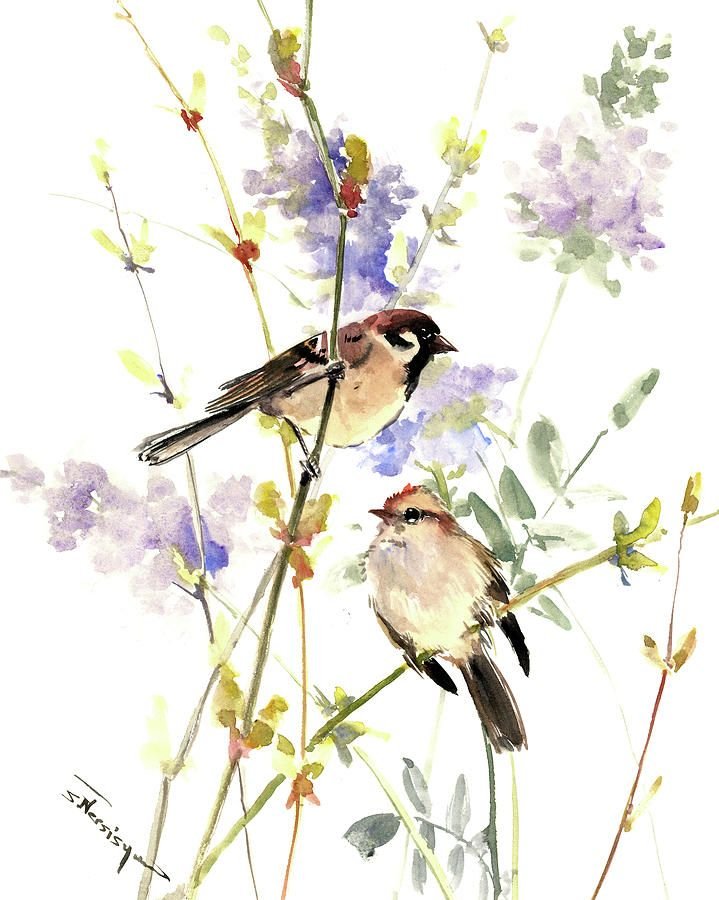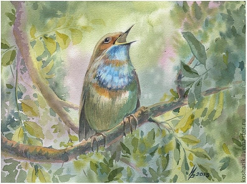 ![Весенние птицы акварель]()