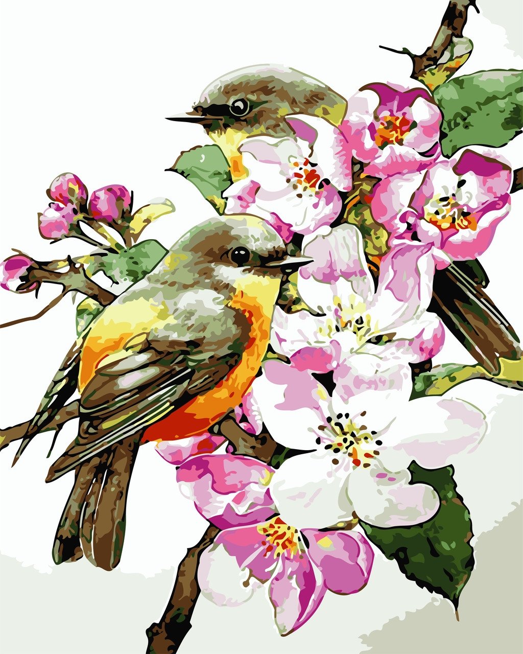 Акварельные птички на белом фоне