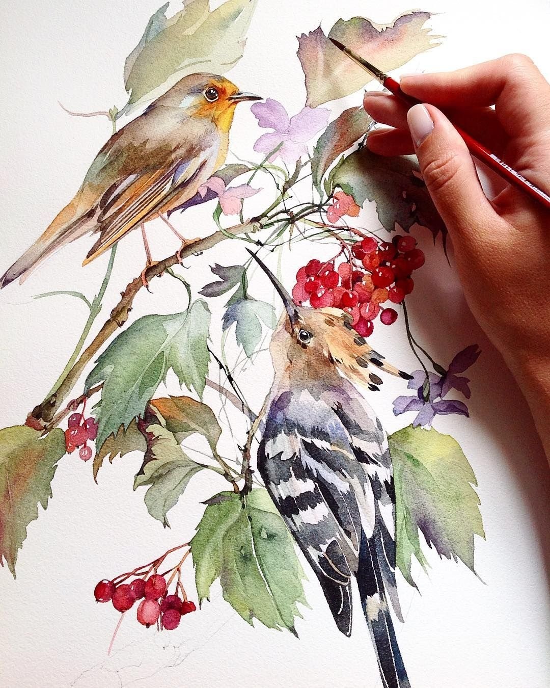 Птицы акварелью